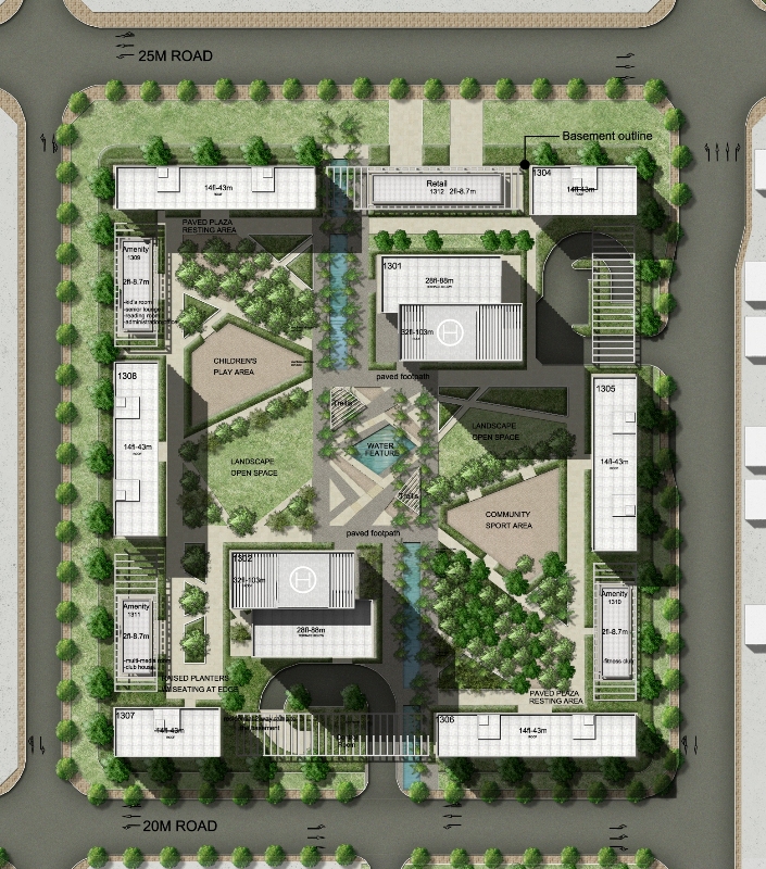 These densely populated blocks, in an urban setting, required landscapes that meet the varying outdoor needs of the many residents. Each landscape was designed using distinctive design themes to create a sense of identity for each block. These designs successfully integrate the architecture and landscape into a stimulating outdoor environment for the enjoyment of the residents.