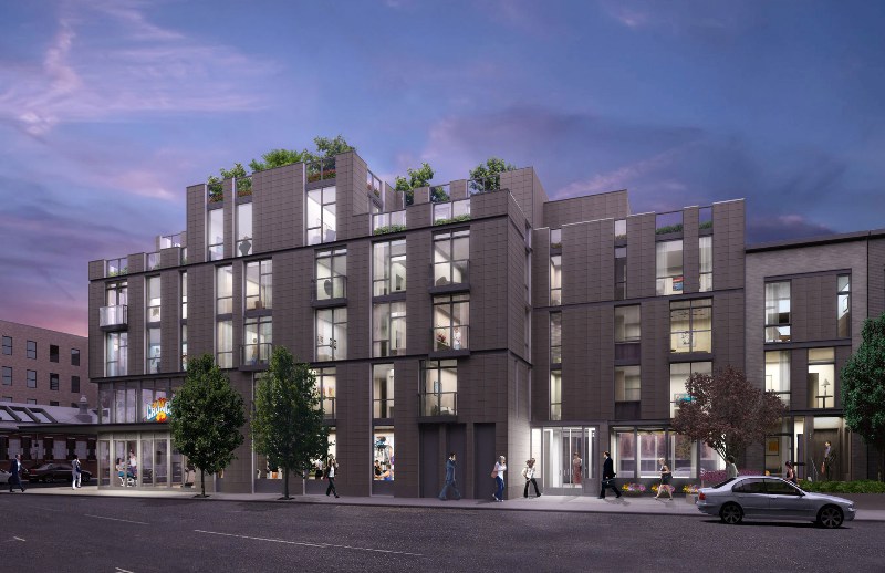 Williamsburg neighborhood. Six story apartment buildings with ground level commercial,
